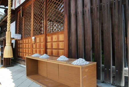 ・祈念を込めて、棚にある白砂を三笠山の形に社前の机上に積み上げる。
